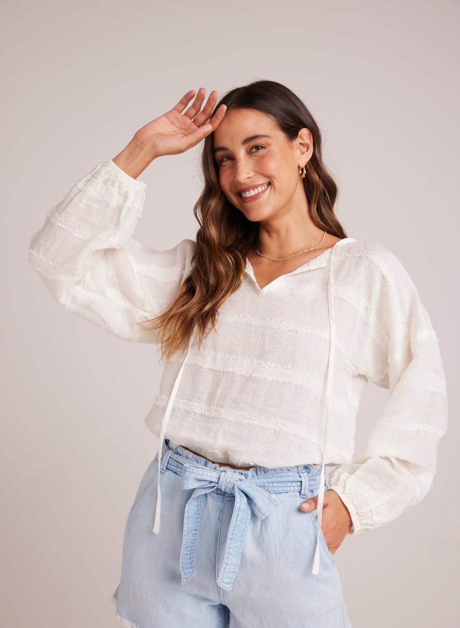 بلوزة بيلا دال برباط بأكمام طويلة للنساء - أبيض