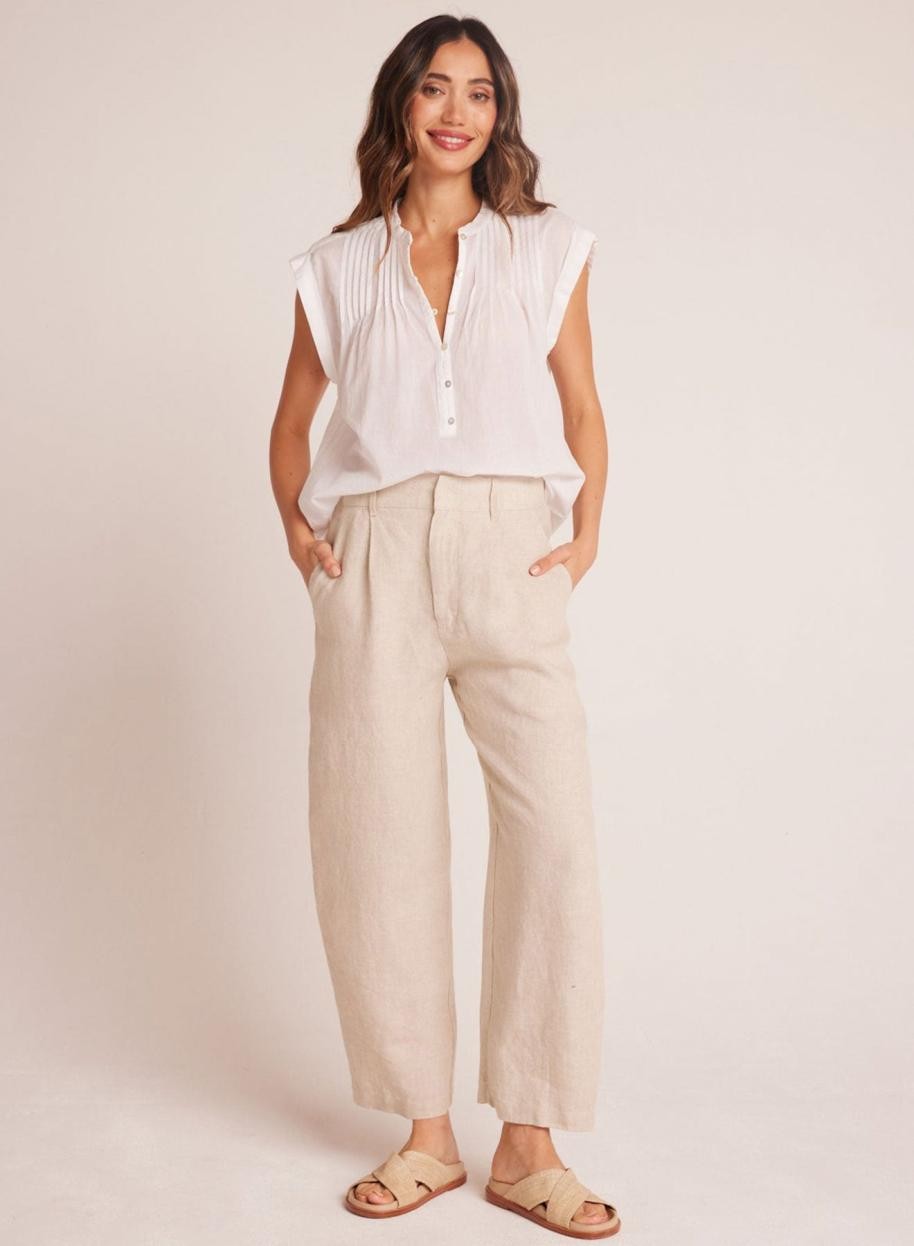 بنطلون | بنطلون بيلا دال نسائي مريح بكسرات أمامية - كتان رملي