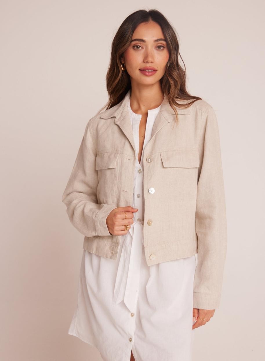 Suéteres y chaquetas | Chaqueta tipo camisa con bolsillo con solapa Bella Dahl para mujer - Lino color arena