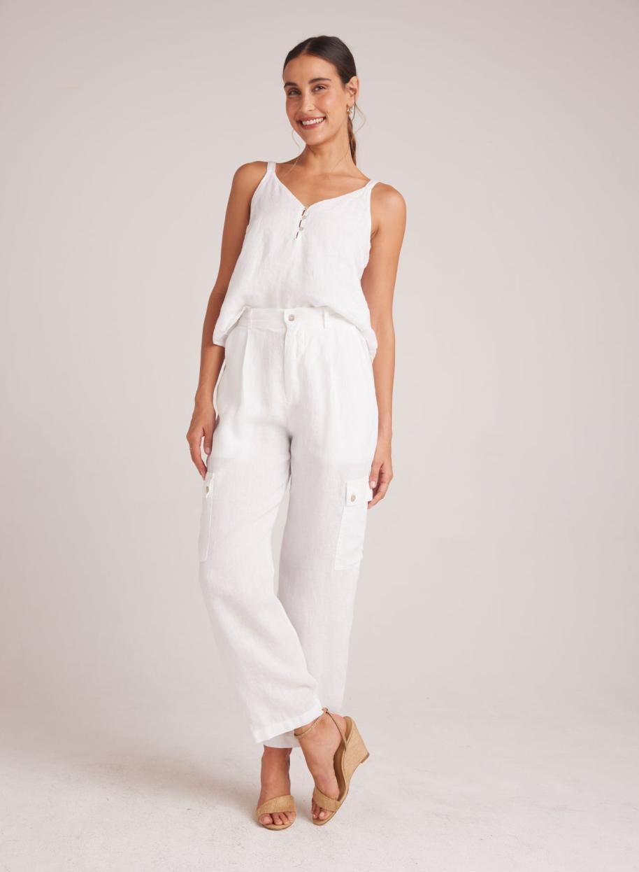 Nadrág | Női Bella Dahl rakott lenvászon cargo nadrág - Fehér