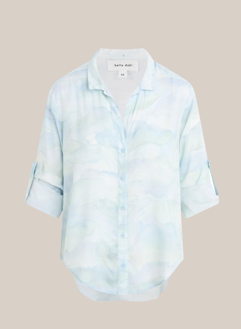 Tá ár léine capri clasaiceach cnaipe-síos ar fáil anois sa phriontáil chamógrafaíochta suaimhneach seo. 100% Réón