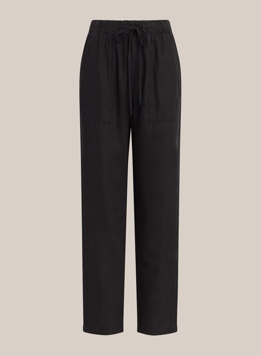 Vi presenterar våra byxor med stegekant och dragsko i midjan. Dessa byxor kombinerar enkelt mode och komfort, vilket gör dem till ett mångsidigt tillskott till din vår- och sommargarderob. 100 % TENCEL™ lyocell.