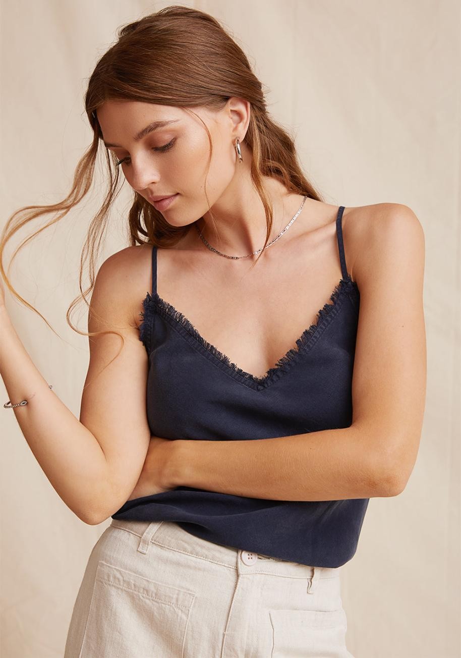 Yıpranmış askılı üstümüz, günlük kullanıma uygun, çok yönlü bir üsttür. Ayarlanabilir askıları, yırtmaçlı yakası ve rahat kesimiyle öne çıkar. Temel ve mükemmel bir katmanlama parçasıdır. Daha zahmetsiz bir görünüm için kot pantolonlarınızla birlikte giyebilir veya çıkarabilirsiniz. Lüks, yumuşak ve çevre dostu TENCEL™ lyocell ile üretilmiştir.