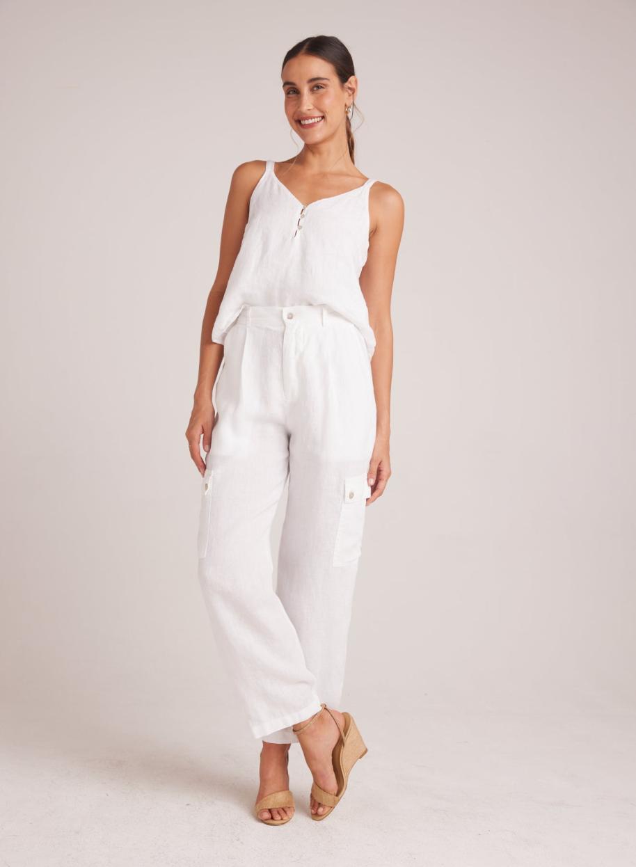 Pants | Women Bella Dahl Pleated Linen Cargo Trousers - White